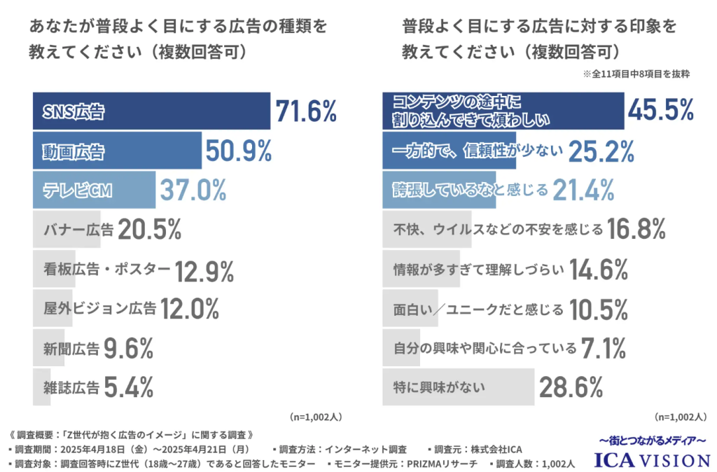 引用:株式会社ICA「Z世代が抱く広告のイメージ1位は「コンテンツの途中に割り込んできて煩わしい」」
