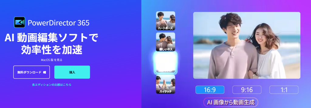 PowerDirectorは、AIによる動画編集機能が豊富なアプリです。