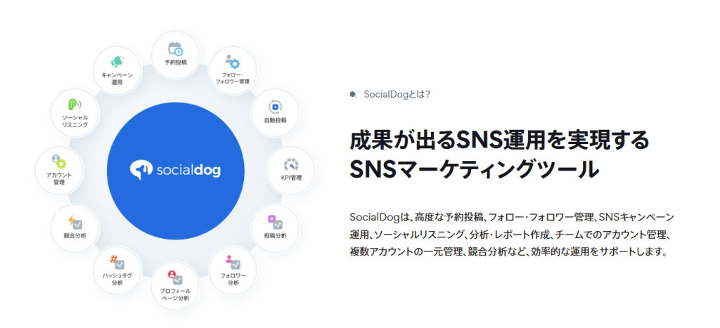 SocialDogは、X(旧Twitter)の運用効率化に特化した、国内で100万アカウント以上が利用するツールです。