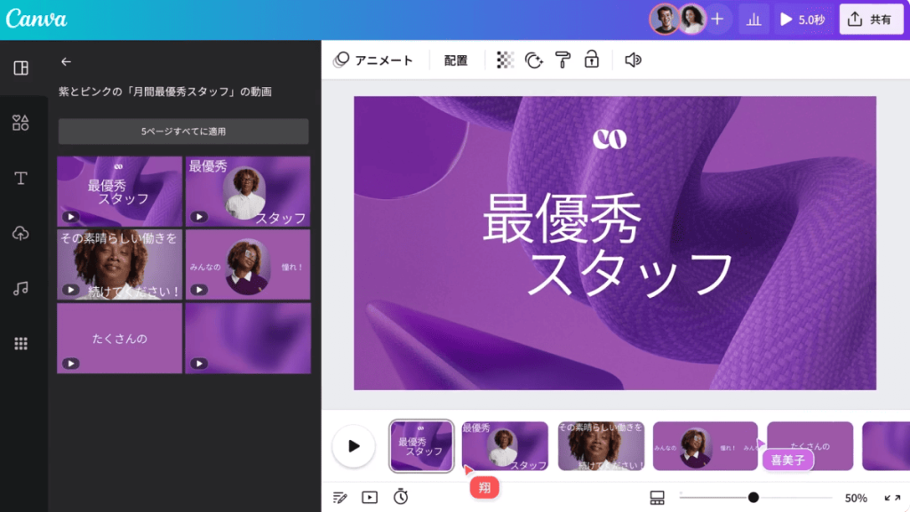 Canva(キャンバ)は、デザイン経験がない方でもプロ並みの動画を作れる、高品質なテンプレートが豊富なツールです。