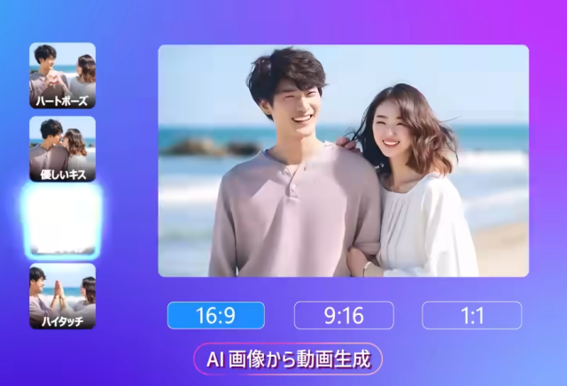 | AI自動編集 | 動画素材を選ぶだけで自動作成 |