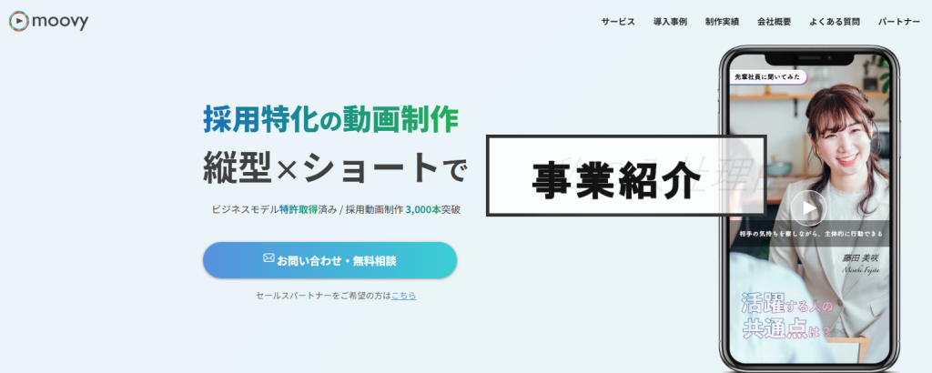 moovyは、採用に特化した「縦型ショート動画」の制作と、動画配信プラットフォームの運営を行う会社です。